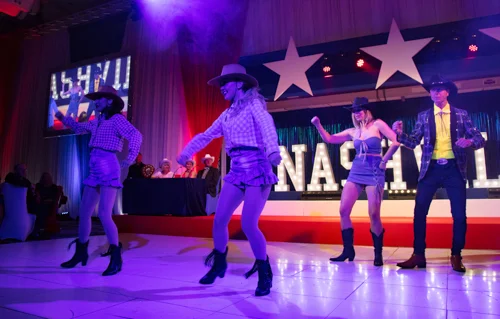 The Midsummer Ball at The Hilton Brighton Metropole was once again a huge success, with over 500 attendees suited and booted with cowboy attire. The theme this year was ‘A Night of Nashville’, and room was dressed wonderfully to suit this. An evening of Southern American food was in store for the guests, as well as a spectacular evening of dancing from four brave fundraising couples; Allison Ferns and Steven Charman for Action Medical Research, Karen Thorne and Stuart Dawes for Chailey Heritage Foundation, Fran Woolley and Gavin Graimes for Chestnut Tree House, and Sharon Starr and James Harrington for The Starr Trust